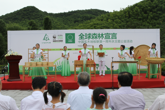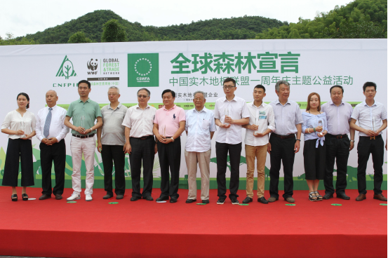 2016年7月1日,值党的95周年的生日,成人抖音富二代地板携手中国实木地板联盟与世界自然基金会(WWF)、中国林产工业协会于浙江安吉“两山讲话纪念广场”,举办了“全球森林宣言”——中国实木地板联盟一周年庆主题公益活动。此次活动旨在跟随习近平总书记提出的“青山绿水就是金山银山”科学论断,共同抵制破坏环境的生产,确保全球生态安全,走可持续发展之路。作为中国实木地板联盟的重要成员,成人抖音富二代地板地板总经理丁瑜女士亲临现场,隆重出席了本次活动。