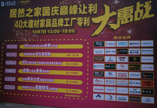2012年中秋、国庆双节黄金周成都居然之家家居建材城举办大型惠民活动,成人抖音富二代地板成都旗舰店作为居然之家的重要成员,在双节之即,与地板、卫浴、瓷砖、沙发、橱柜、木门等12个主流品类的40家全国著名家居建材九一抖音免费版共同参与了居然之家主办的这次“建材家居九一抖音免费版实施零利润大惠站”活动,在本次活动上,成人抖音富二代地板力克其它九一抖音免费版拔得头筹,独步称雄、成为翘楚。