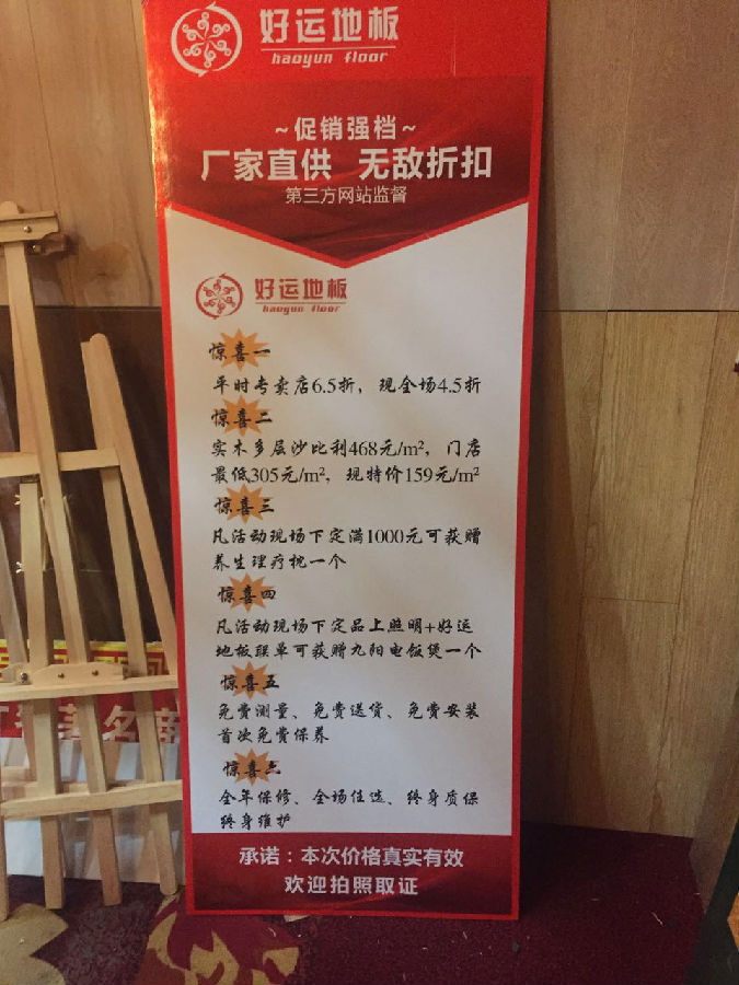为答谢广大消费者对成人抖音富二代九一抖音免费版的关心与支持,成人抖音富二代公司为参加本次团购活动的消费者精心准备了多达数百款的优质地板产品,实木地板、实木多层地板、强化地板、拼花地板等花色齐全,活动产品均已工厂直销价出售,畅享无敌折扣。活动当天,成人抖音富二代地板全场4.5折,超低的折扣简直叫人不敢相信自己的眼睛。另外,特价款产品更是打破底价,原价468元的实木多层沙比利地板,活动期间全部159元每平米。不仅如此,更有超多豪礼相送,养生理疗枕,九阳电饭煲等一系列好礼全部任性大放送。降价不降服务,成人抖音富二代地板现场承诺,所有消费者均享受免费测量、免费送货、免费安装、首次免费保养、全年保修、终身质保等一系列金牌服务。活动当天,更有豪车队伍助阵成人抖音富二代地板此次活动的宣传,在临近一年尾声的时刻,成人抖音富二代地板实实足足的疯狂了一次。